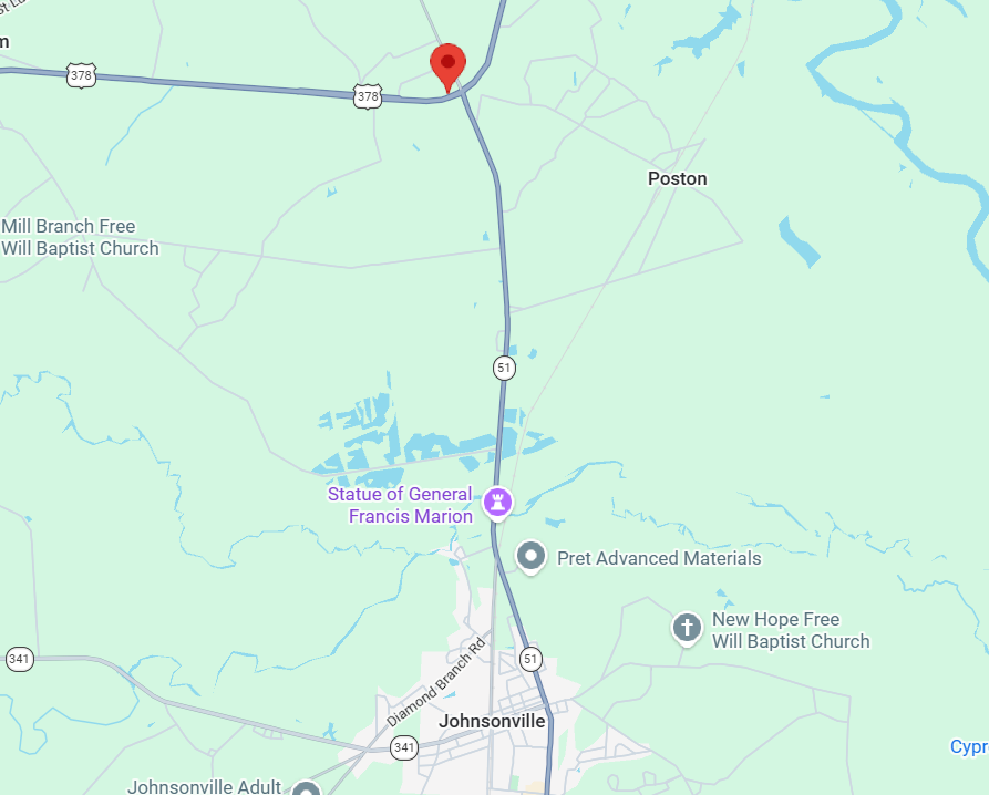 Located near the intersection of Highway 379 and Highway 51 in Johnsonville, SC